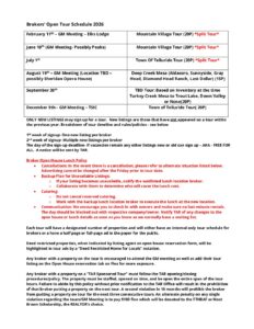 17 Feb Brokers’ Open Tours Schedule– 2026 Posted at 21:36h in by evp@telluriderealtors.net 0 Comments 0 Likes